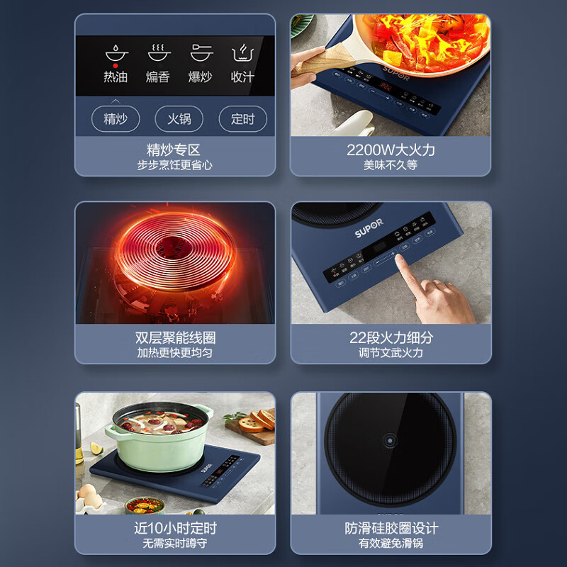 苏泊尔(SUPOR)ZMD安心系列 素彩机身 精炒四步曲 定时 22档火力细分 LTE强化微晶板 电磁炉C22-IH963D价格:329.00元!