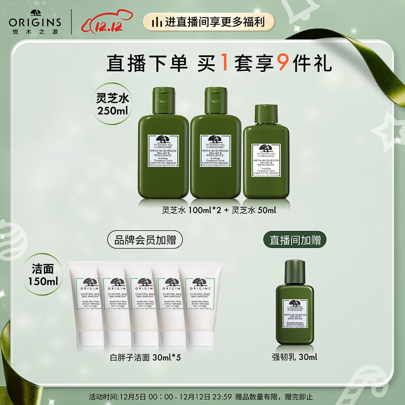 悦木之源(Origins)灵芝水乳套装礼盒(水200ml+乳液100ml) 化妆品护肤品礼盒生日礼物价格:760.00元!