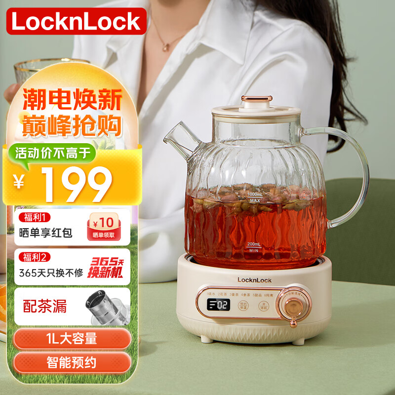 乐扣乐扣养生壶 1L煮茶器含茶漏 家用玻璃花茶壶烧水壶办公室电热水壶煮茶壶价格:199.00元!