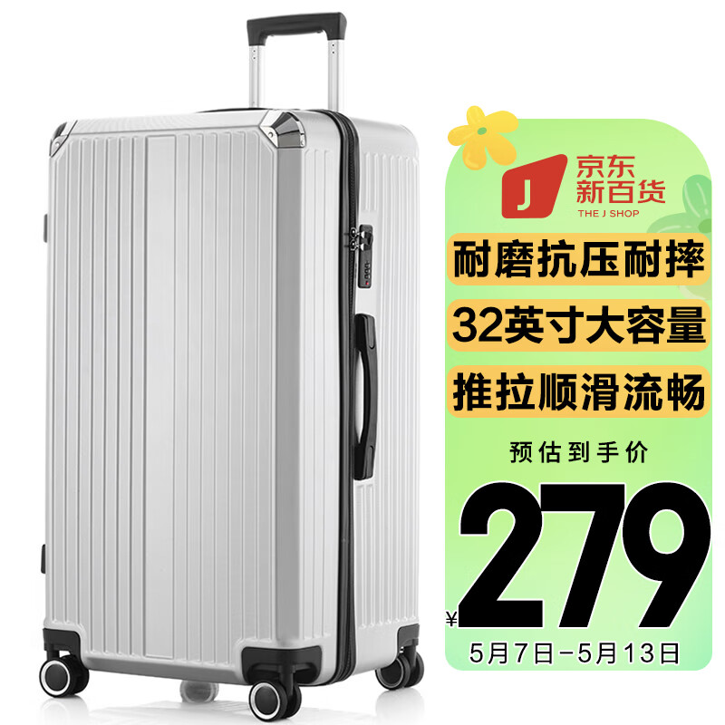 梵地亚行李箱男32英寸大容量超大型拉杆箱大尺寸旅行箱密码箱女皮箱子银价格:279.00元!