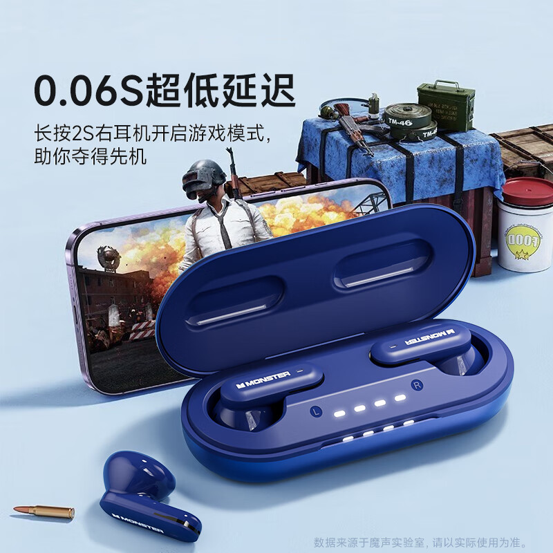 魔声(MONSTER)【蓝牙5.4】无线蓝牙耳机半入耳式游戏电竞降噪跑步运动音乐耳机Type-C 适用华为小米 XKT25蓝色价格:139.00元!