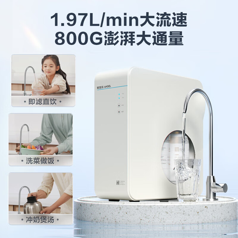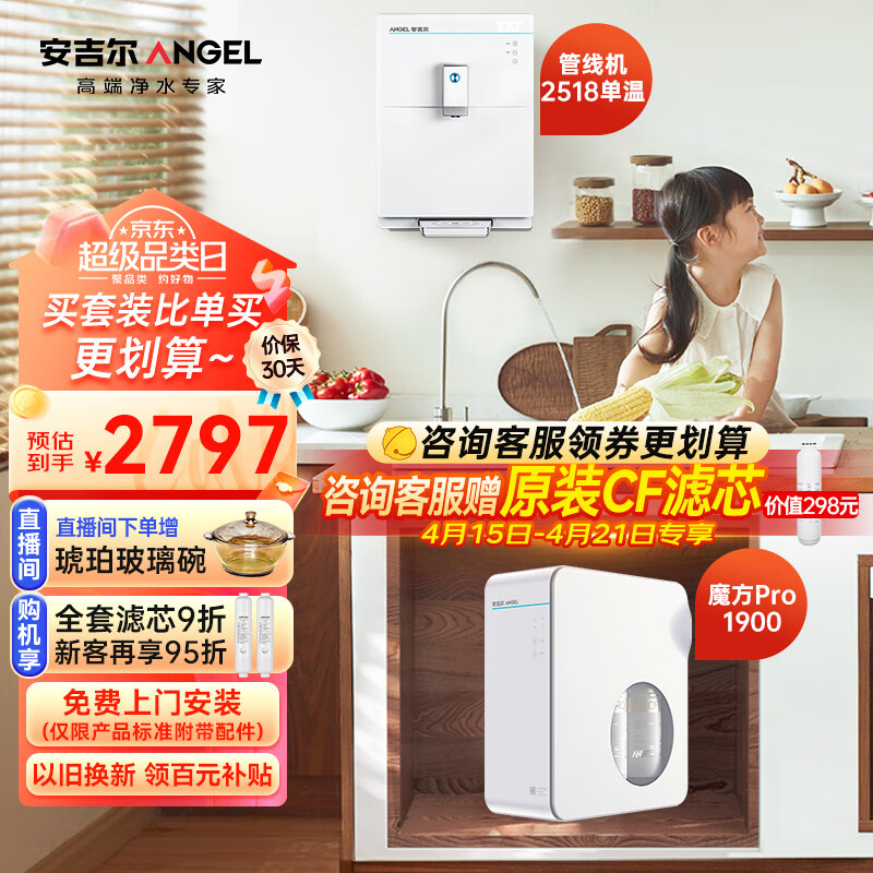 安吉尔净水器家用过滤器套装【魔方pro1900+管线机2518】RO反渗透厨下式直饮机800G体验价格:2797.00元!