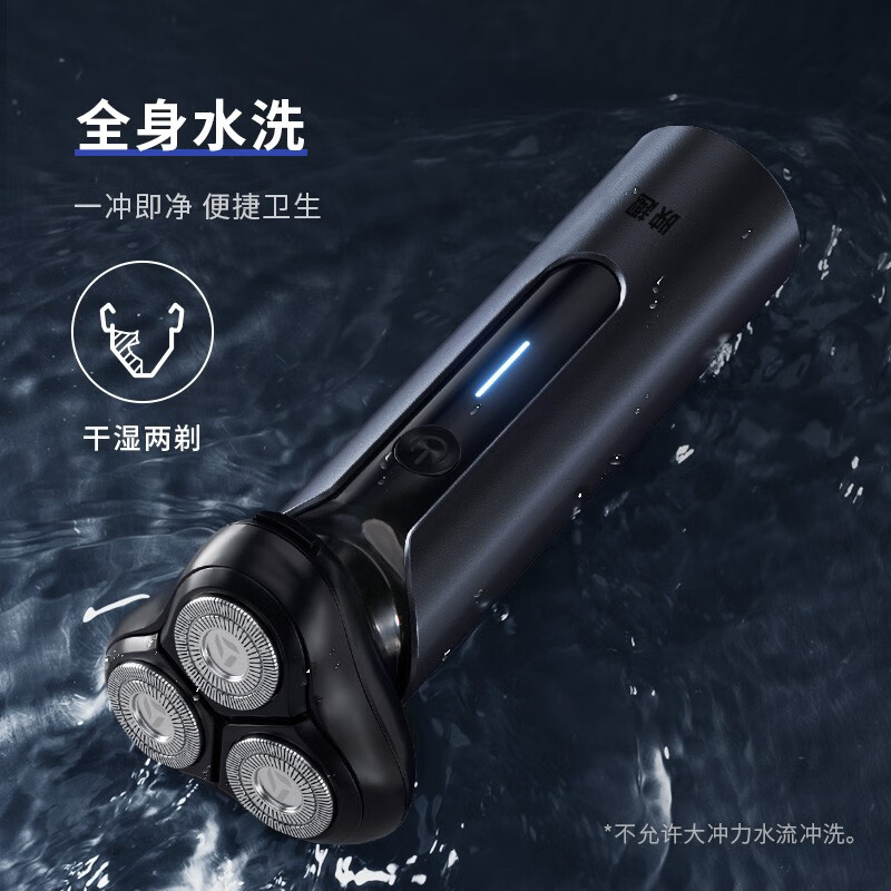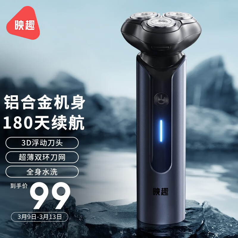 映趣剃须刀电动刮胡刀男士车载便携式充电式三刀头须刨轻便胡须刀迷你礼物送生日男朋友男生爸爸 深邃蓝-铝合金机身价格:109.00元!