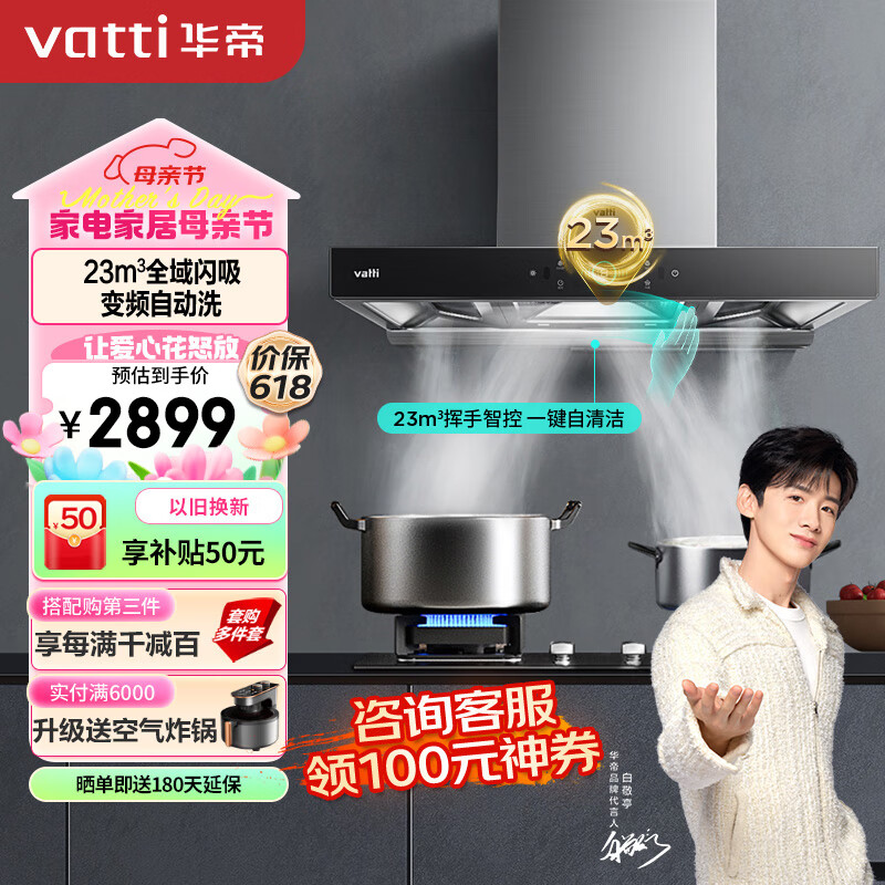 华帝(VATTI)抽油烟机家用顶侧欧式大吸力烟机燃气灶烟灶套装23风量自动清洗顶吸吸油烟机灶具套装i11178天然气价格:3099.00元!
