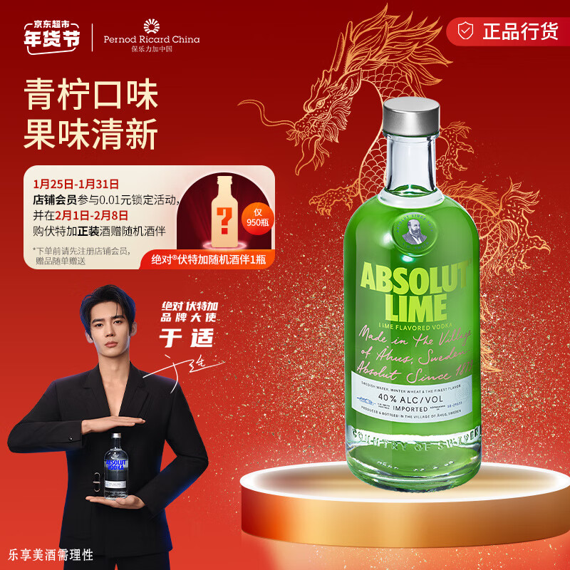 (Absolut)伏特加 洋酒 40度 青柠味 700ml 年货畅饮价格:99.00元!