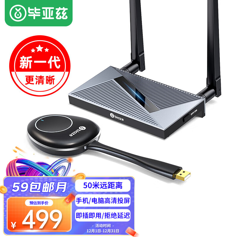 毕亚兹 企业级USB无线投屏器同屏器 电脑手机平板电视HDMI高清传输器传投影仪显示器会议套装价格:499.00元!