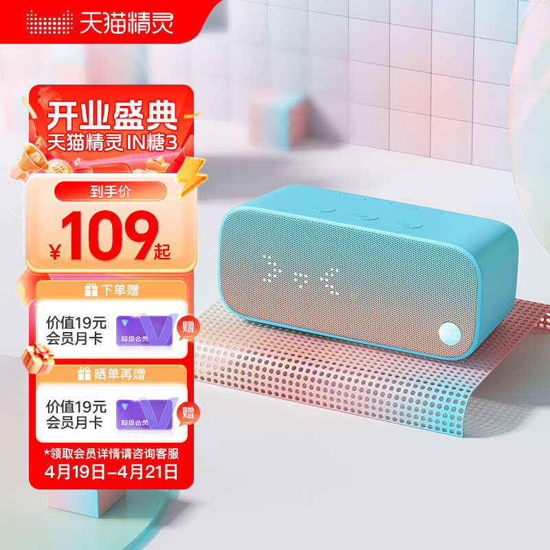 天猫精灵智能蓝牙音箱 家用智能闹钟时钟音响 声控迷你音箱 AI语音控制生日礼物 IN糖3 天真蓝价格:129.00元!