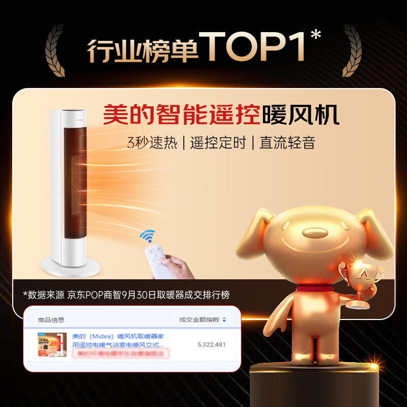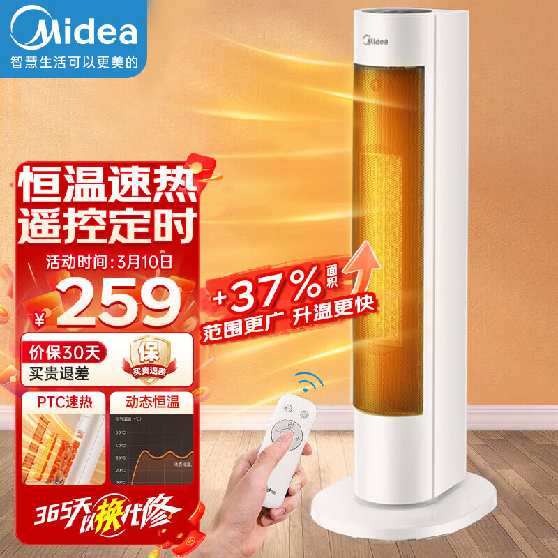 美的(Midea)暖风机取暖器家用智能遥控电热电暖气浴室电暖风立式电暖器定时热风机摇头暖风扇全屋升温 【遥控定时 恒温速热】价格:399.00元!