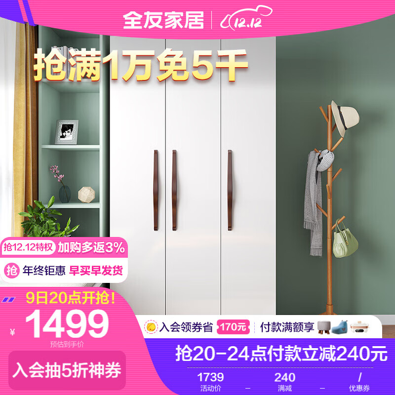 全友家居 衣柜北欧风平开门衣柜半定制灵活组合卧室衣橱121807价格:1739.00元!
