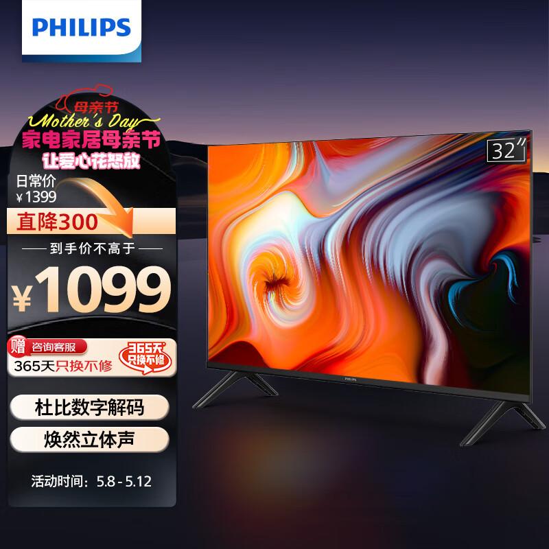 飞利浦(PHILIPS)32英寸全高清智慧屏老年人家用小屏 无线投屏教育智能平板液晶电视机 32PFF6899/T3以旧换新价格:1099.00元!