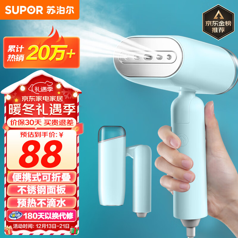 苏泊尔 SUPOR 手持挂烫机家用迷你烫衣机小型蒸汽电熨斗便携式旅行熨衣服熨烫机 GT70AX-12价格:78.00元!