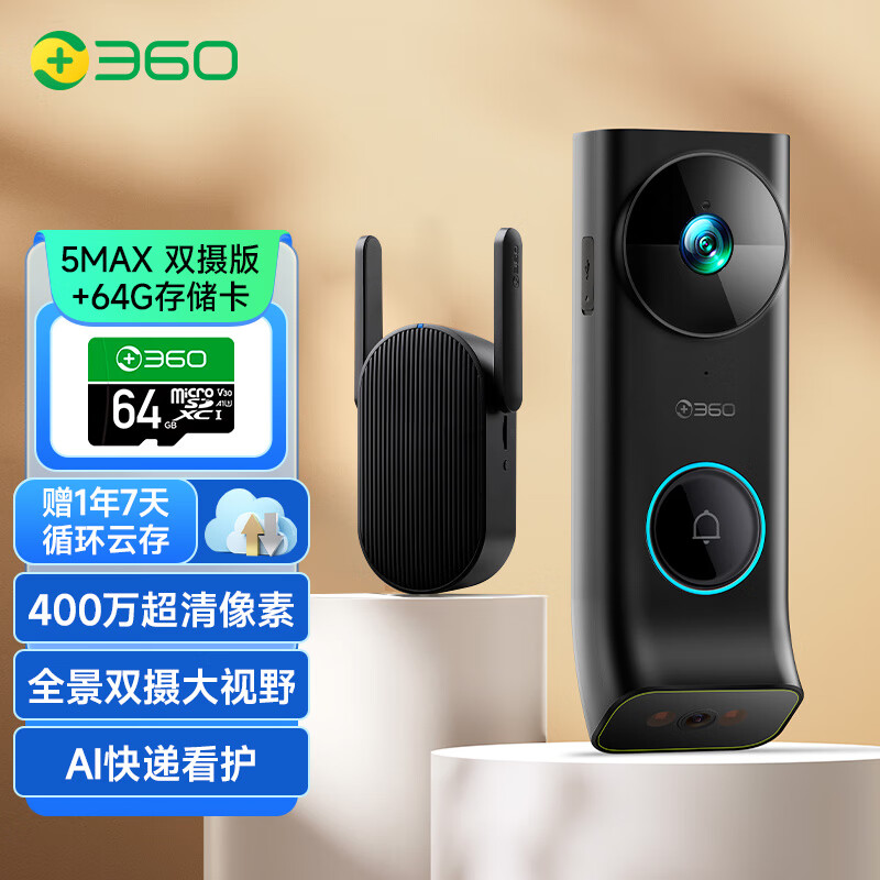 360双摄可视门铃5Max双摄像头家用监控智能摄像机2.5K智能门铃电子猫眼 无线wifi 400W超清夜视R5MAX价格:549.00元!
