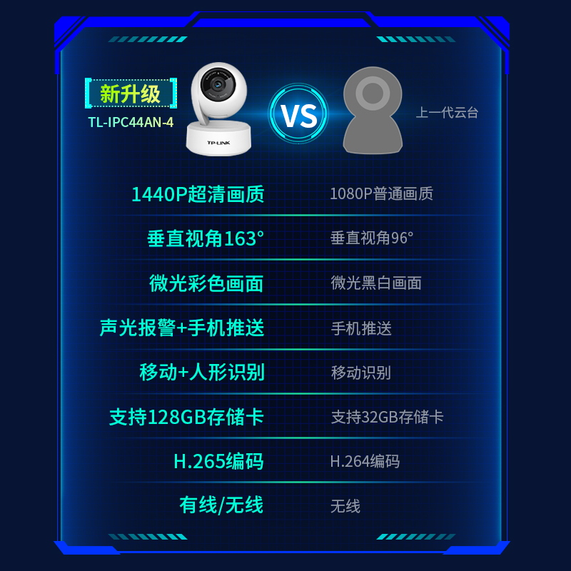 TP-link无线监控摄像头 2.5K超清400万云台 家用智能网络家庭安防监控器摄像机 360全景wifi手机远程IPC44AN价格:529.00元!
