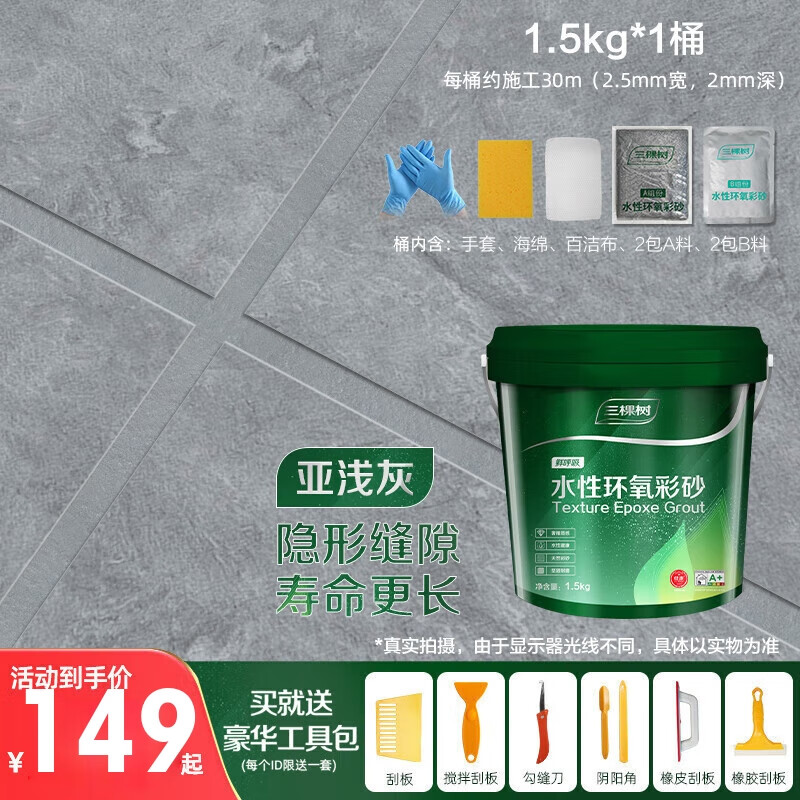 三棵树漆(SKSHU)水性环氧彩砂桶装美缝剂耐磨耐水客厅厨卫地砖瓷砖胶 亚浅灰价格:149.00元!