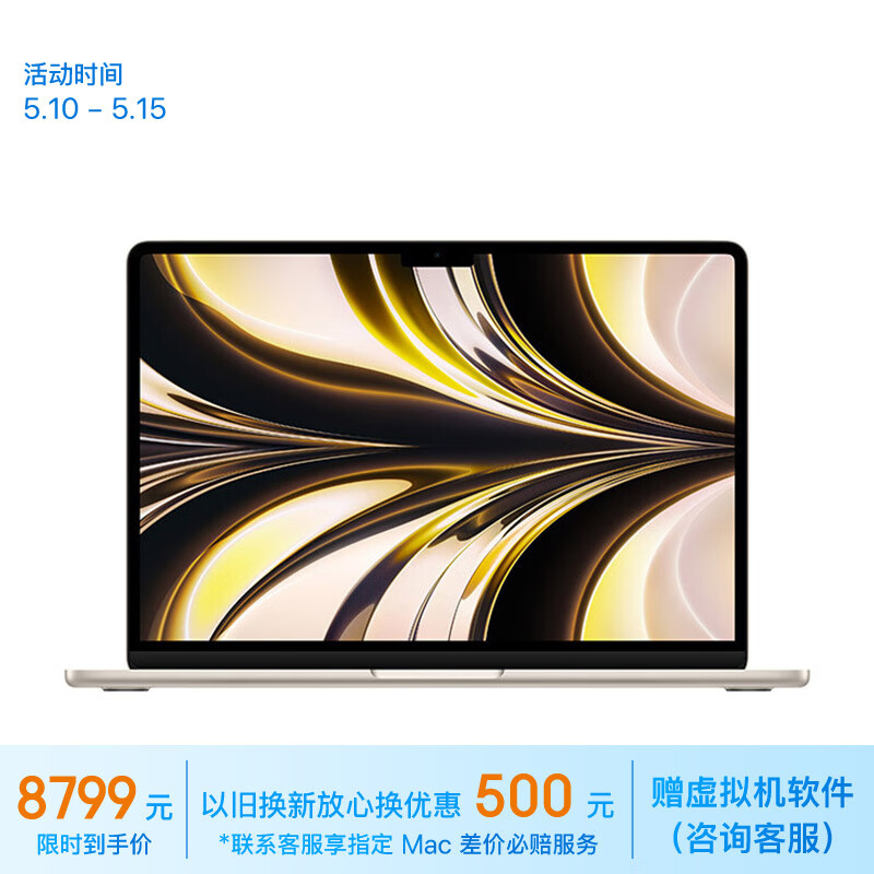 Apple/苹果AI笔记本/2022MacBookAir13.6英寸M2(8+10核)8G512G星光色电脑MLY23CH/A价格:9499.00元!