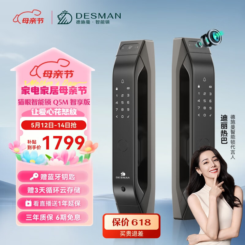 德施曼(DESMAN)全自动智能锁指纹锁密码锁智能门锁 可视智能猫眼 Q5M智享版价格:1849.00元!