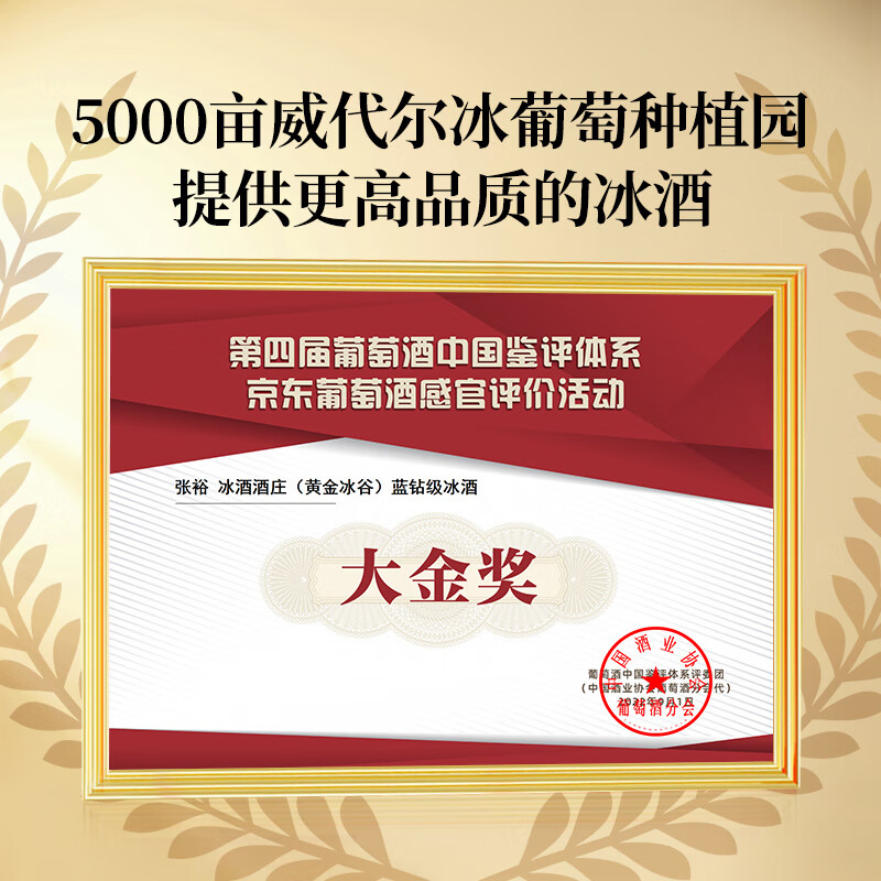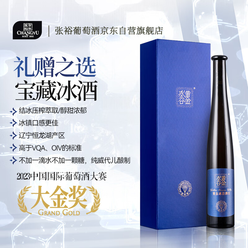 张裕 冰酒酒庄(黄金冰谷)蓝钻级冰酒375ml礼盒装甜型国产红酒送礼价格:437.00元!