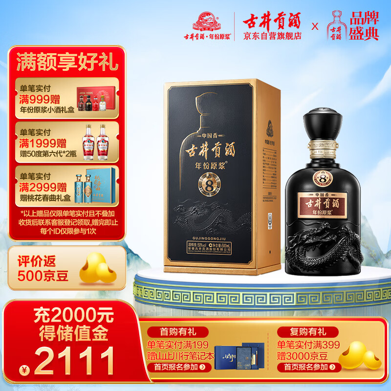 古井贡酒 年份原浆中国香古8 浓香型白酒 50度500ml*1瓶价格:376.50元!