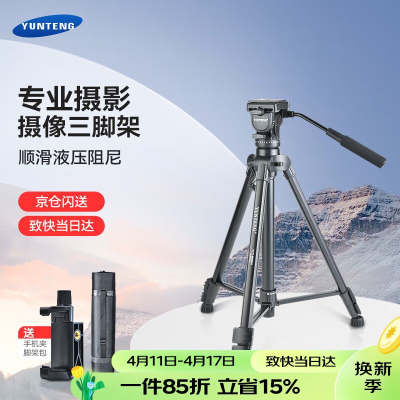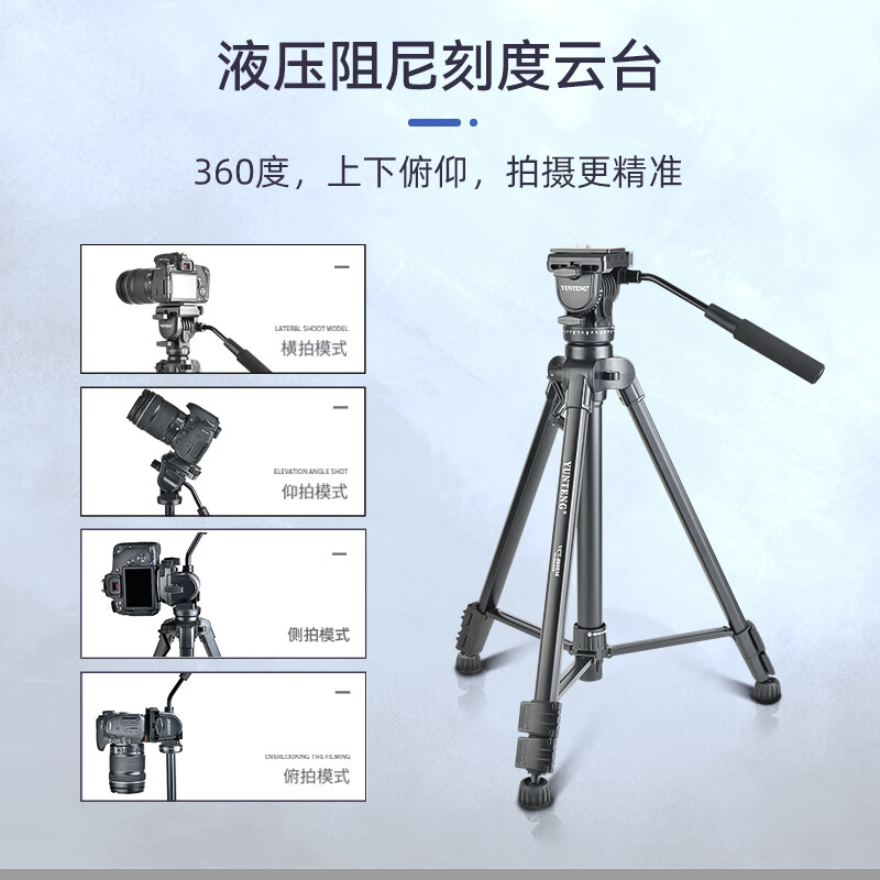 云腾 VCT-880专业大型三脚架单反相机摄像机液压云台摄影直播支架铝合金三角架 880三脚架+手机夹价格:275.00元!