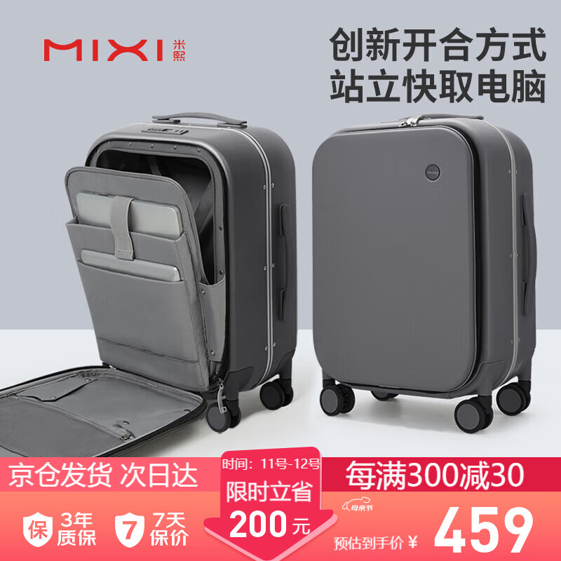 米熙前开盖拉杆箱子行李箱大容量登机箱铝框箱男旅行箱20英寸矿岩灰60价格:659.00元!