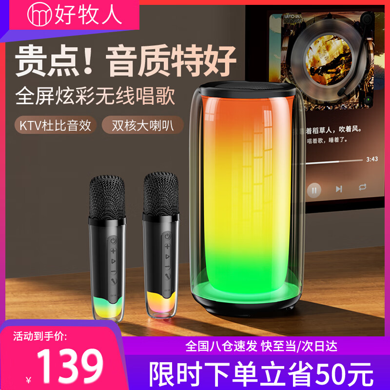 好牧人无线蓝牙音箱k歌麦克风话筒音响一体家庭ktv音响套装户外家用语音桌面电脑唱歌神器一体式自带声卡价格:139.00元!