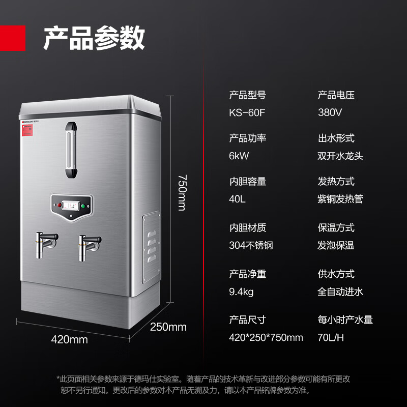 德玛仕DEMASHI 商用开水器 不锈钢商用电开水器 全自动进水开水机 304不锈钢保温烧水器 KS-60F(380V)价格:899.00元!