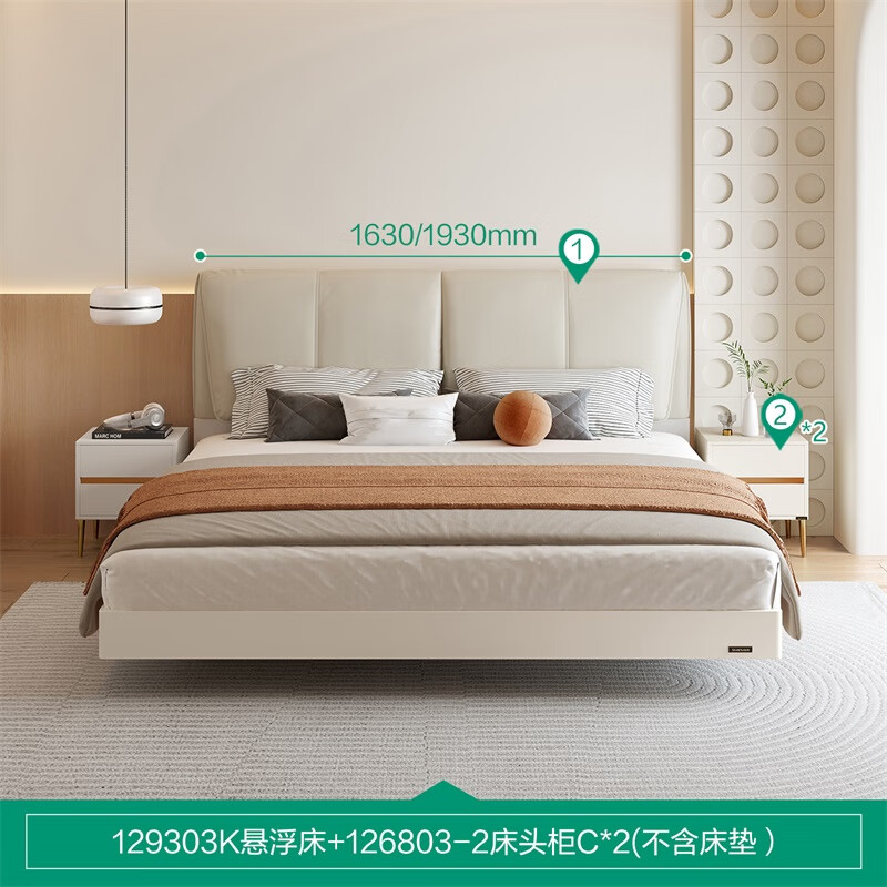 全友家居 现代简约大象耳朵皮艺软包床1.5米主卧室双人悬浮大床129303价格:2998.57元!