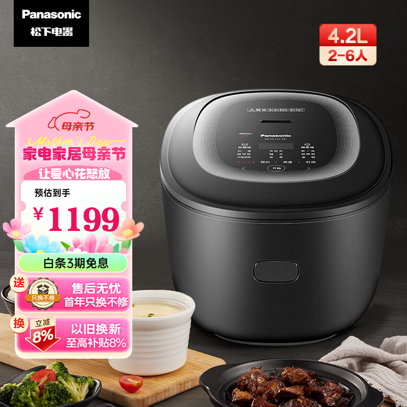 松下(Panasonic)低糖电饭煲4.2L真香煲 IH家用电饭锅 多功能烹饪 24H智能预约 备长炭内胆SR-HL151-KK价格:1199.00元!