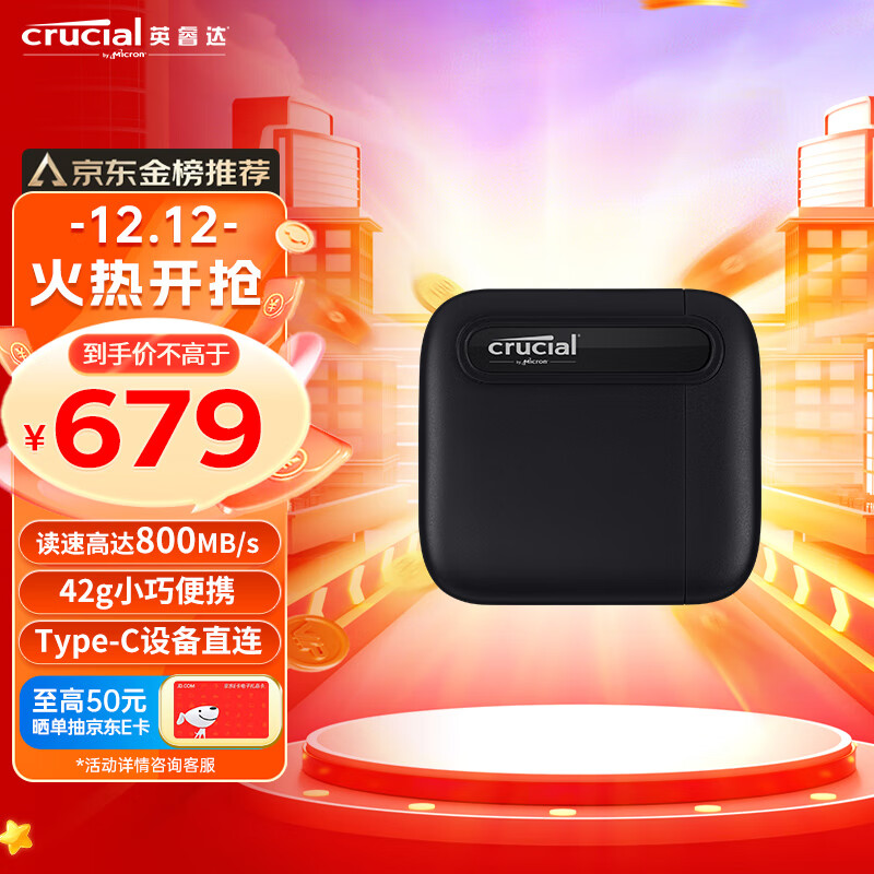 英睿达(Crucial)美光 2TB Type-c USB3.2 移动固态硬盘(PSSD)X6系列 SSD 800MB/s高速 笔记本手机外接SSD价格:679.00元!