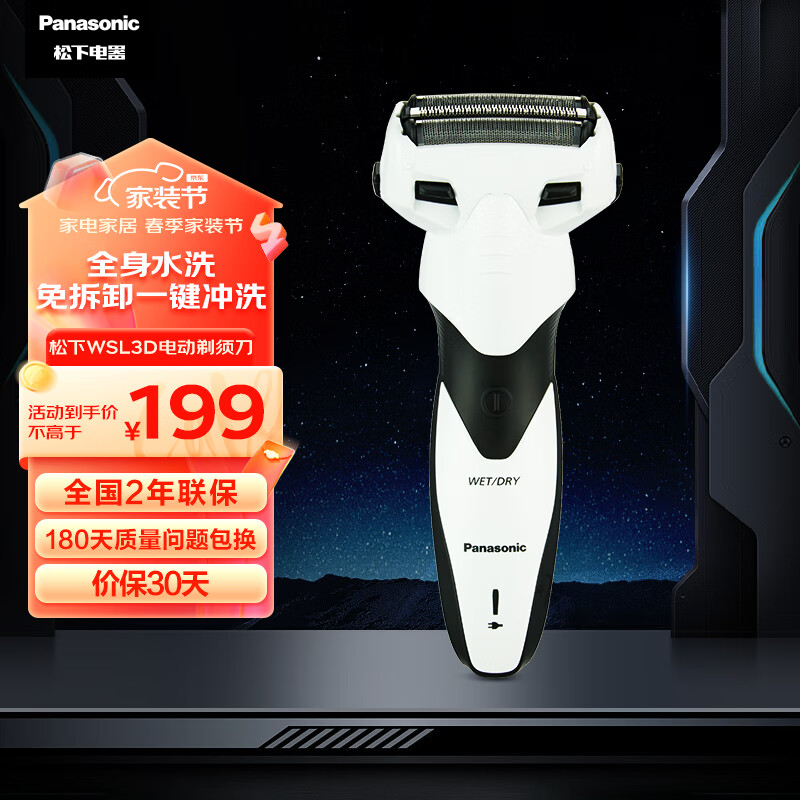 松下(Panasonic)经典3系剃须刀刮胡刀电动往复式高速马达生日礼物男士礼物情人节礼物送男友WSL3D价格:199.00元!