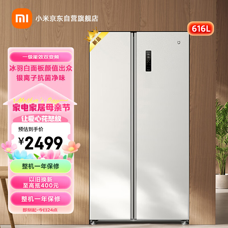 米家小米616L对开门大容量家用冰箱双开门 一级能效风冷无霜超薄嵌入银离子除菌 BCD-616WMSA价格:2499.00元!