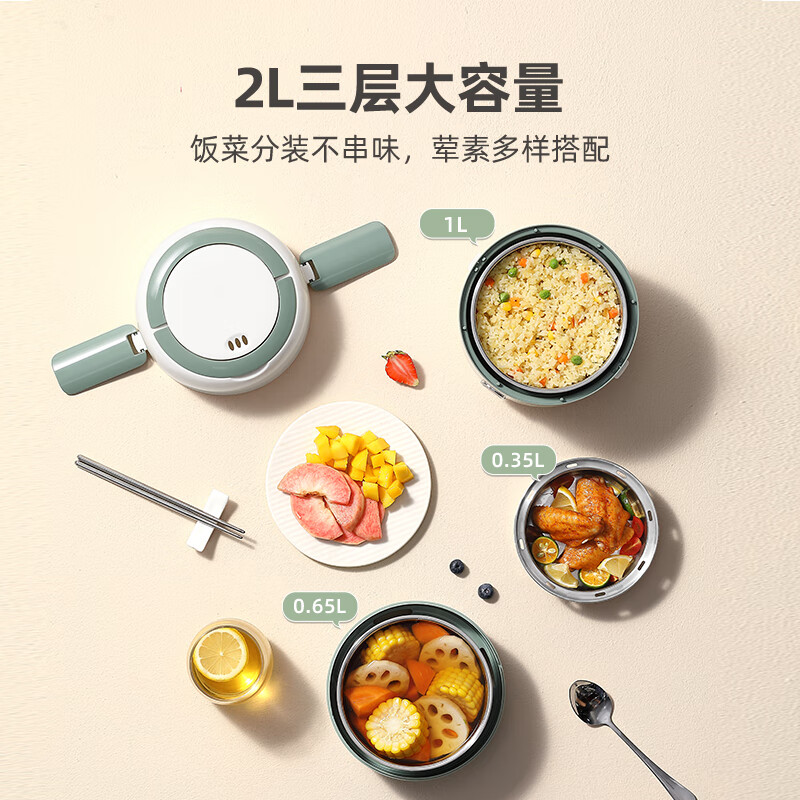 小浣熊电热饭盒保温可插电加热自热蒸饭菜热饭神器蒸煮便当盒上班族 2L绿色餐具款价格:109.90元!