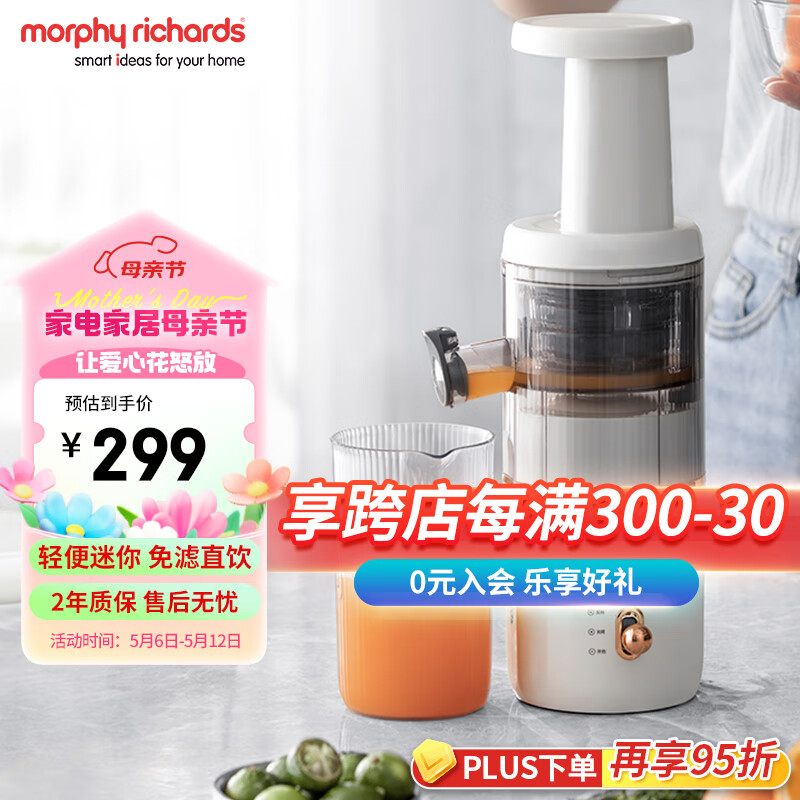 摩飞电器(Morphyrichards)榨汁机 家用原汁机 渣汁分离 多功能全自动果蔬榨果汁机 MR9901 白色价格:299.00元!
