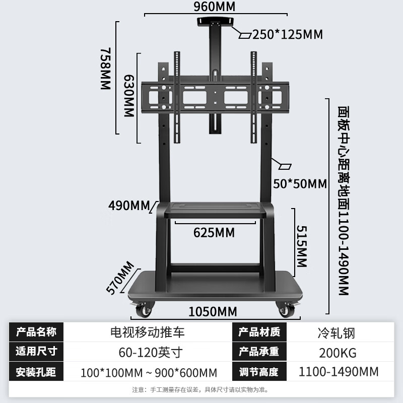 津赢 电视移动推车电视机移动支架电视架子落地液晶显示屏白板机希沃鸿合商用显示屏一体机挂架(60-120英寸)价格:829.00元!