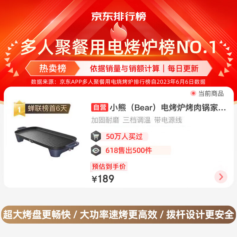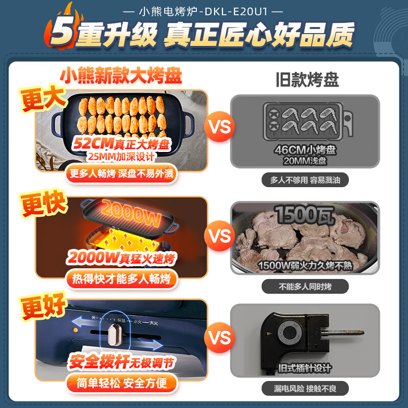 小熊(Bear)烤肉锅电烤盘烤肉盘电烤炉烧烤家用多功能电烧烤炉大容量2000W速烤轻油少烟不粘烤肉机DKL-E20U1价格:179.00元!