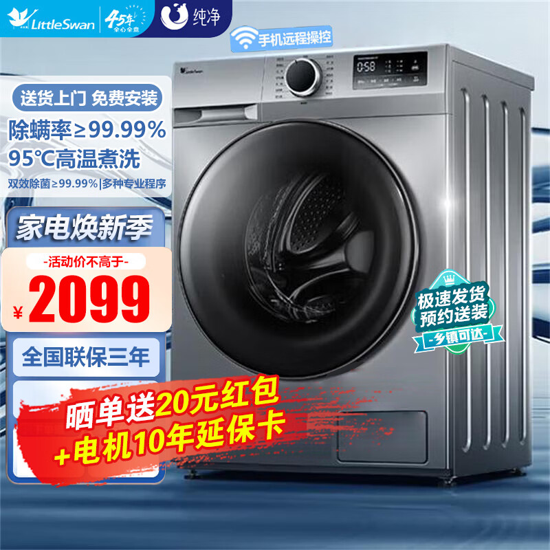 小天鹅(LittleSwan)洗衣机10公斤洗烘一体机滚筒全自动 大容量带烘干空气洗除螨智能家电TD096-Y1T价格:1979.00元!