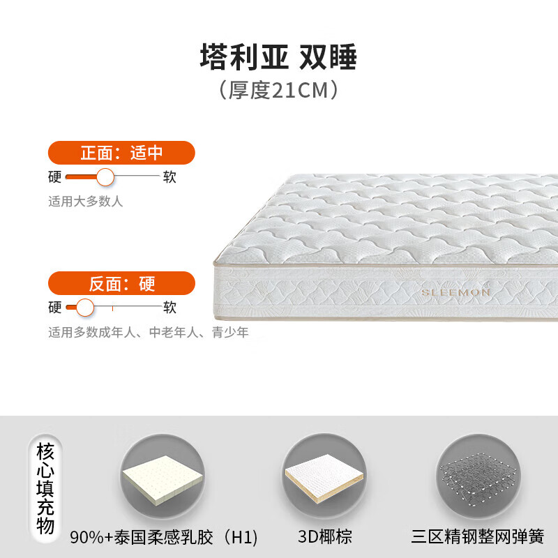 喜临门高纯乳胶床垫 3D椰棕床垫 三区整网弹簧床垫 塔利亚双睡1.35x2米价格:1498.00元!