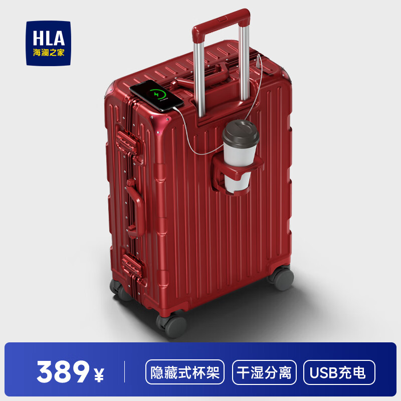 海澜之家(HLA)行李箱男女学生铝框拉杆箱旅行密码托运皮箱 法拉红24英寸价格:419.00元!