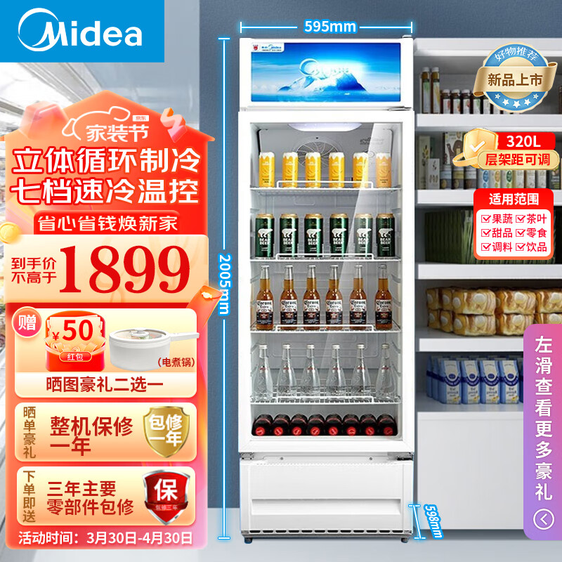 美的(Midea)展示柜 商用立式双层玻璃门冷藏冰箱陈列柜 便利店超市餐馆啤酒水果饮料鲜花保鲜柜 SC-320GM价格:1999.00元!