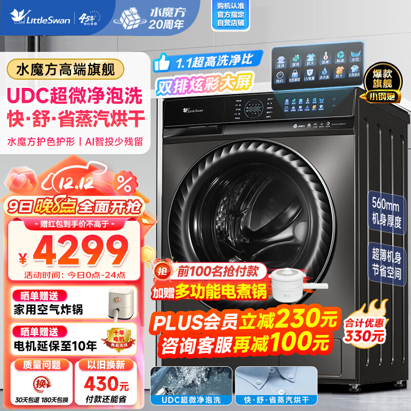 小天鹅(LittleSwan)10公斤水魔方小钢炮洗烘一体 滚筒全自动洗衣机 智能投放 UDC净泡洗【v88升级款809】VC189带烘干价格:4299.00元!