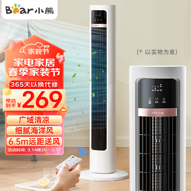 小熊(Bear)电风扇落地扇无叶风扇塔扇立式风扇空气循环扇智能遥控风扇办公室风扇 DFS-D40J2价格:269.00元!