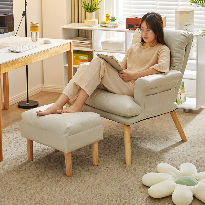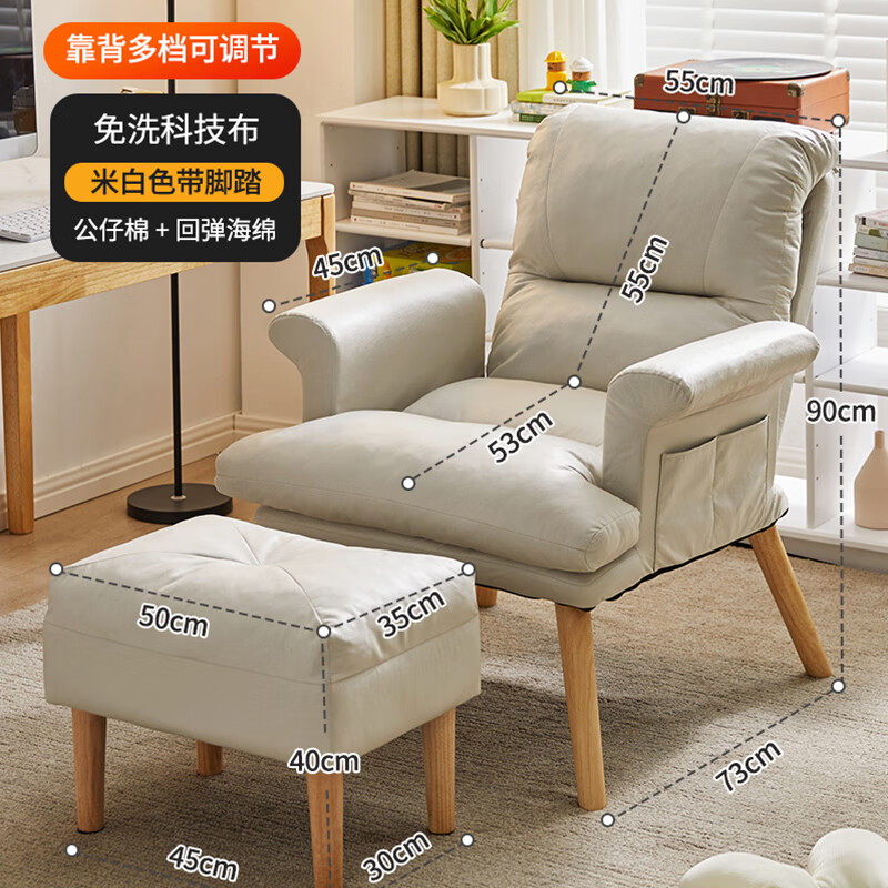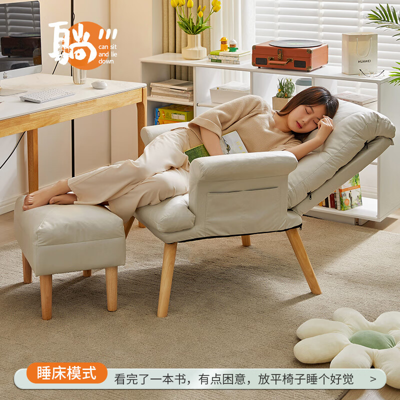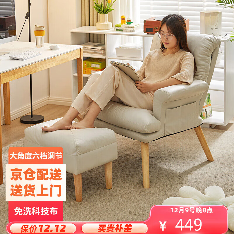 爱必居 实木电脑椅家用电竞椅可躺办公靠背椅子懒人沙发椅 米白色+脚踏价格:509.00元!
