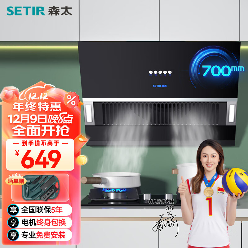 森太(SETIR) 抽油烟机侧吸式脱排吸油烟机家用小尺寸大吸力抽烟机 CXW-220-B270A价格:749.00元!