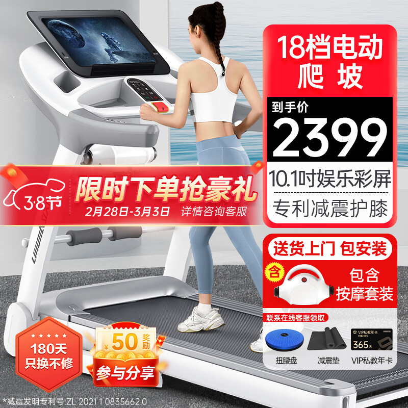 立久佳(lijiujia)跑步机家庭用智能可折叠健身房运动爬坡器材 R8 10.1吋彩屏多ZS价格:2399.00元!