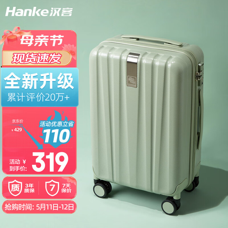 汉客行李箱男拉杆箱女登机旅行箱20英寸青竹绿密码箱镇店之宝再次升级价格:429.00元!