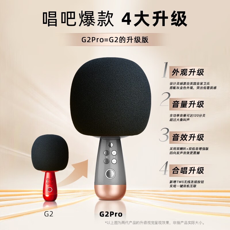唱吧无线麦克风小巨蛋G2Pro 蓝牙音响手机K歌宝 主播唱歌直播录音话筒 智能降噪高续航家庭派对娱乐KTV价格:489.00元!