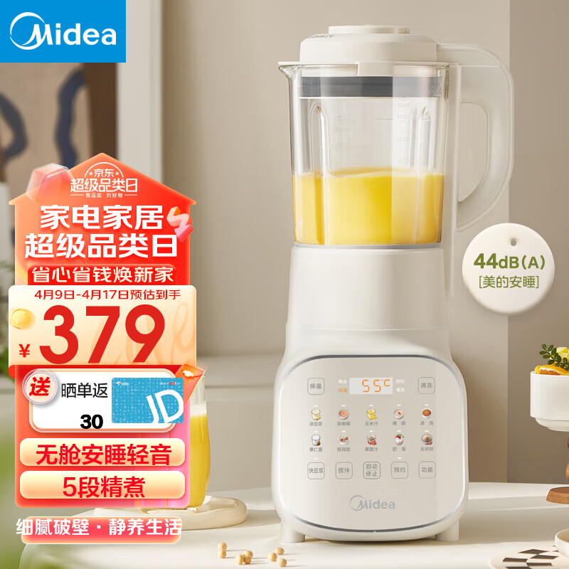 美的(Midea) 破壁机家用免洗豆浆机 大功率高转速搅拌机大容量果汁机多功能全自动五谷杂粮磨粉低噪婴儿料理机 【新品无舱轻音强力搅拌】S39价格:599.00元!