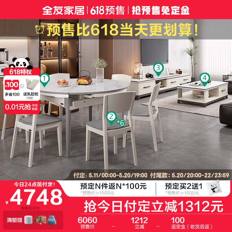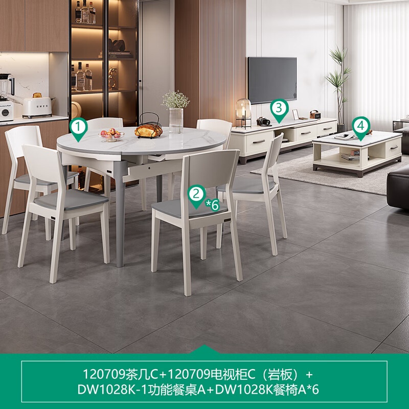 全友家居 现代岩板客餐厅9件套装120709茶几电视柜DW1028一桌六椅组合价格:6060.00元!