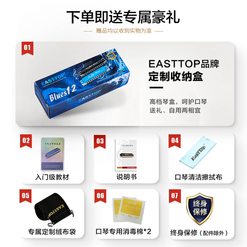 东方鼎EASTTOP 蓝调12孔FALA布鲁斯口琴灰色F1201价格:198.00元!