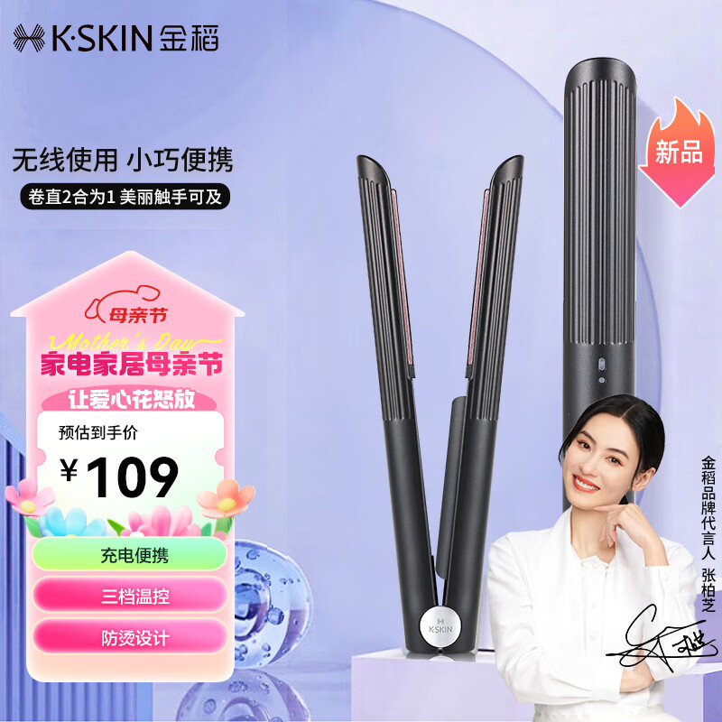 金稻直板夹无线充电夹板卷发棒卷直两用男女小熨板直发电夹板烫发棒神器KD386黑色价格:139.00元!